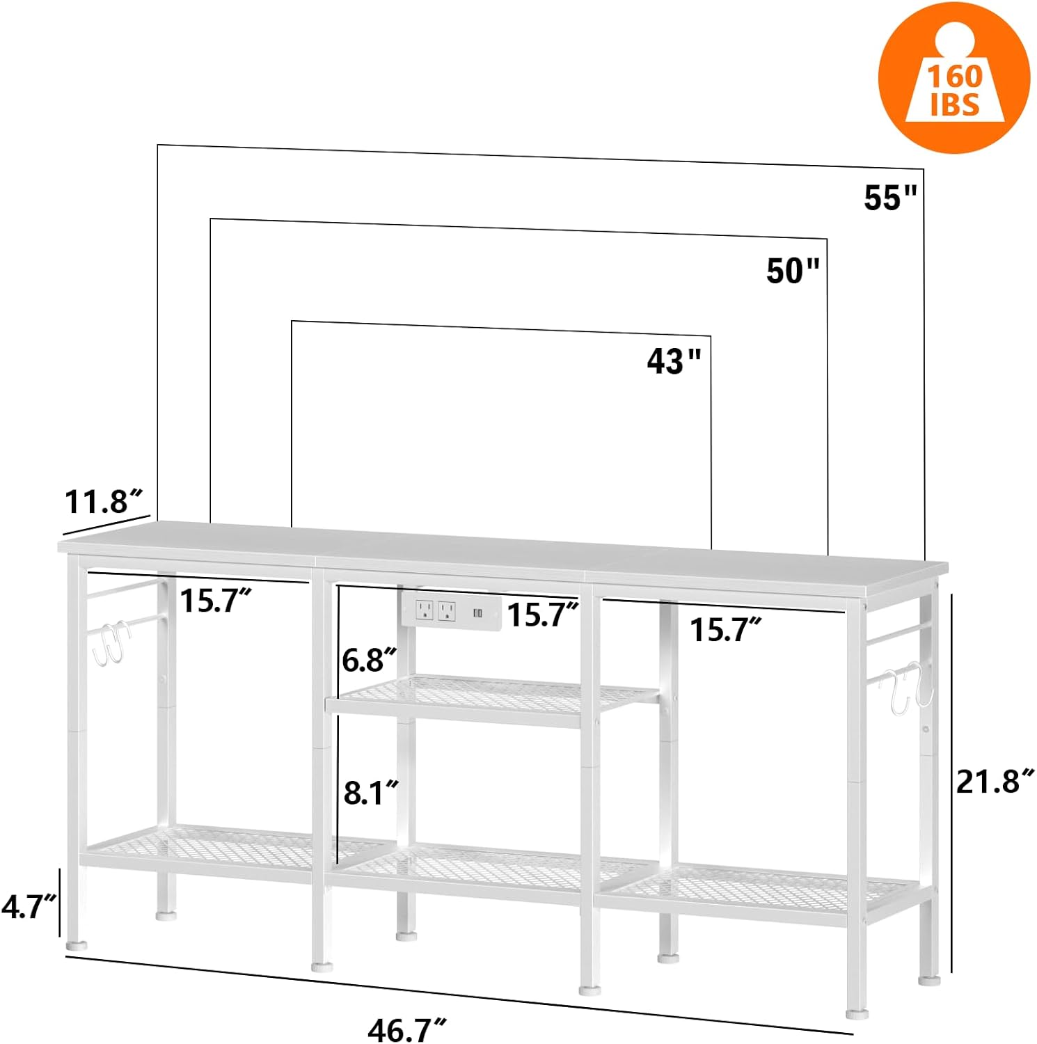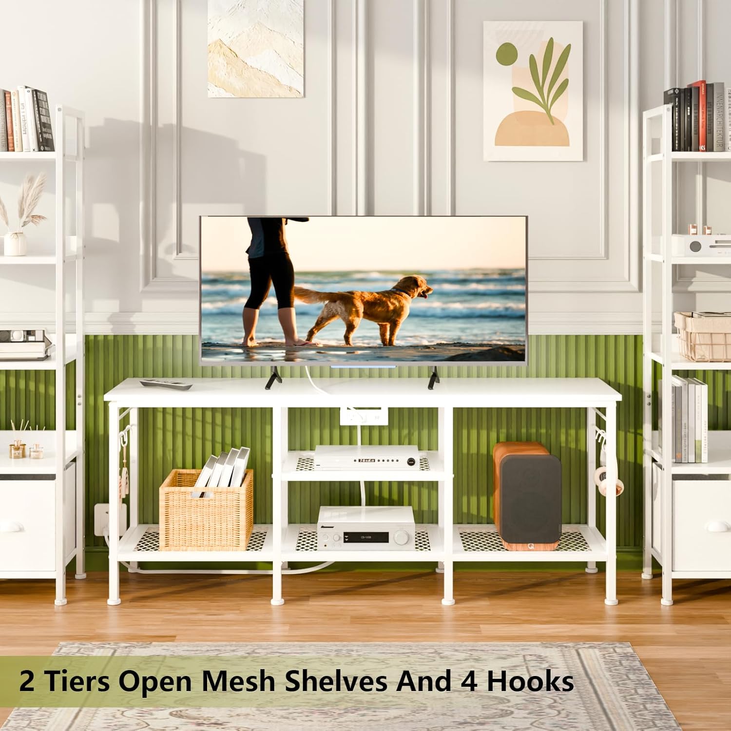 Ample Storage Space: This tv console has 2 tiers open mesh shelves and 4 hooks, provides ample space to organize and display your media equipment, gaming consoles, DVDs, Xbox, PS4 and more. Keep your living room tidy and clutter-free.