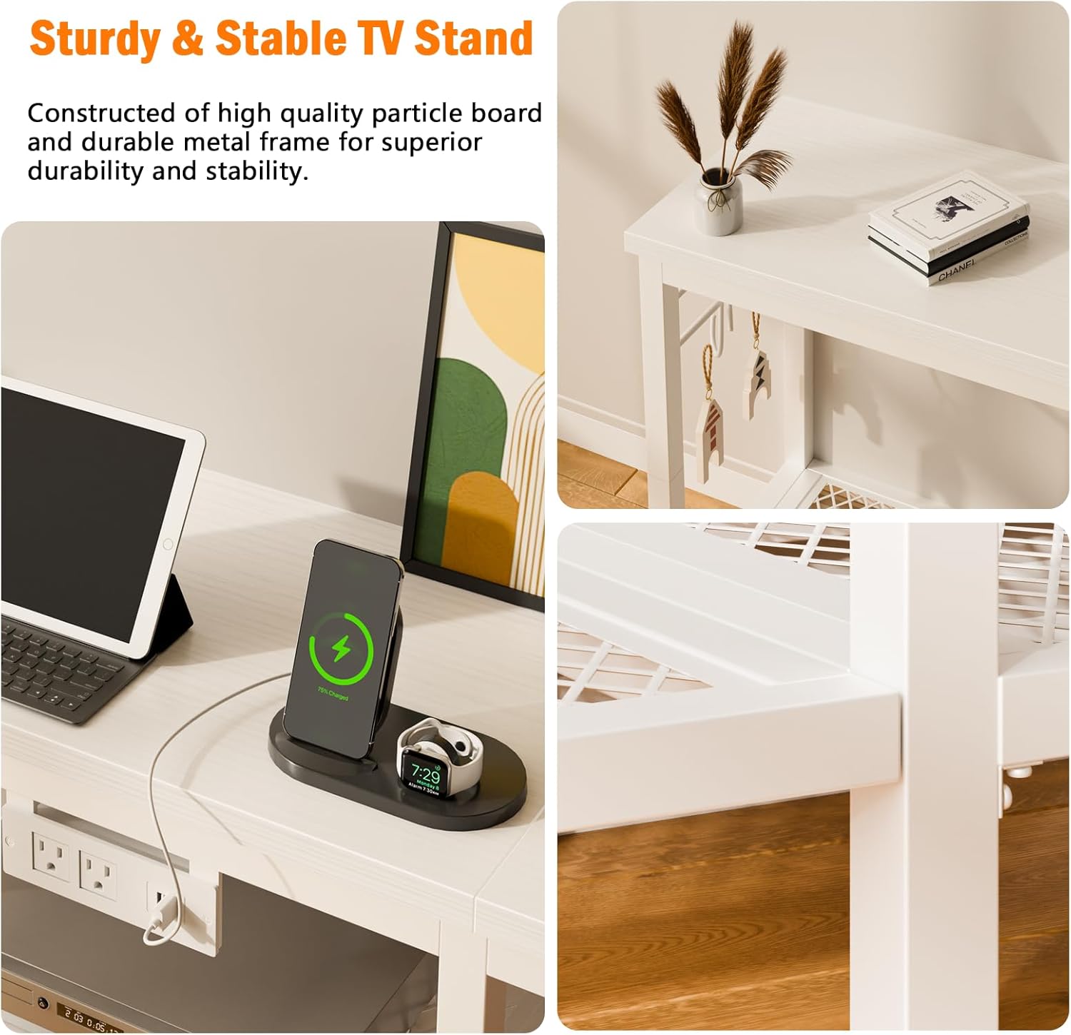 TV Table with Charging Station: This modern tv entertainment center is equipped with a power strip with 2 Power outlets and 2 USB charging ports, allowing you to easily connect and power your electronic devices without the hassle of messy wires.