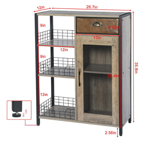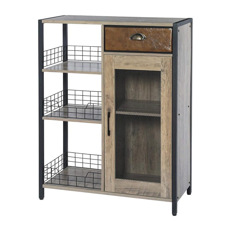 Iron-wood combination multi-layer storage cabinet with drawers, dining and kitchen shelves, grid door wine cabinet storage
