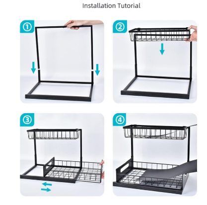 Kitchen storage rack, sink rack, non-drilling countertop layer pull-out storage rack
