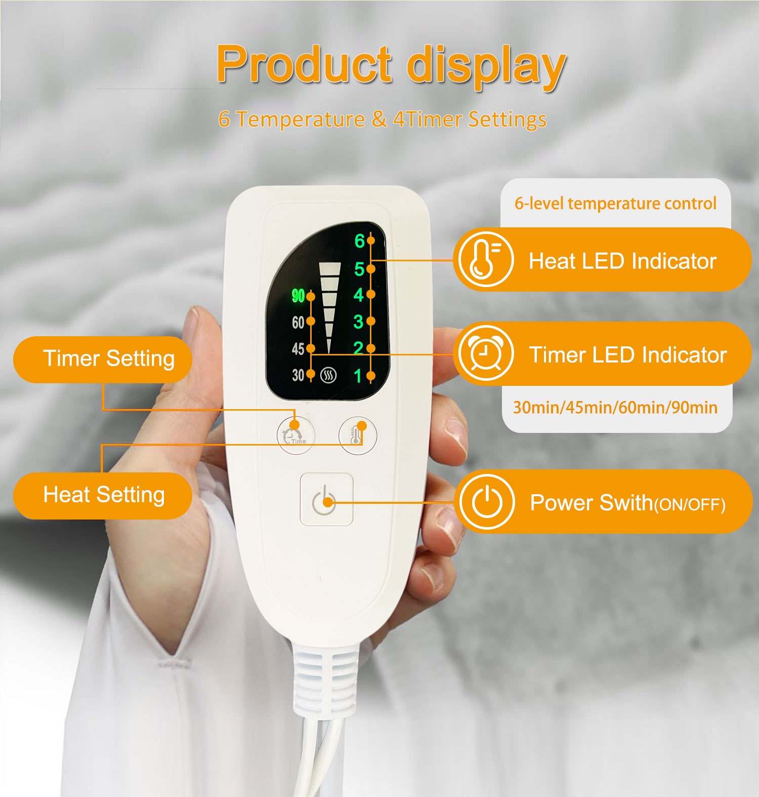 Equipped with a smart controller offering 6 adjustable temperature settings (30–60°C) and 4 timer modes, this heating pad allows personalized comfort. The 2-meter-long cord and wide voltage (110-240V) support flexible use with US/EU plugs.